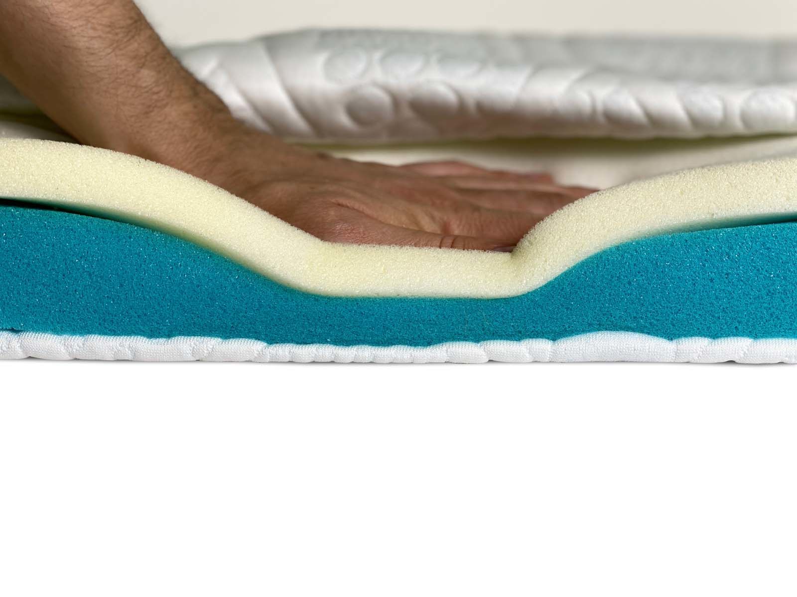 Топпер (наматрасник/тонкий матрас) Alfabed Entity – выполнен из двух вязкоэластичных слоев, которые отличаются по плотности и эффектам эластичности: