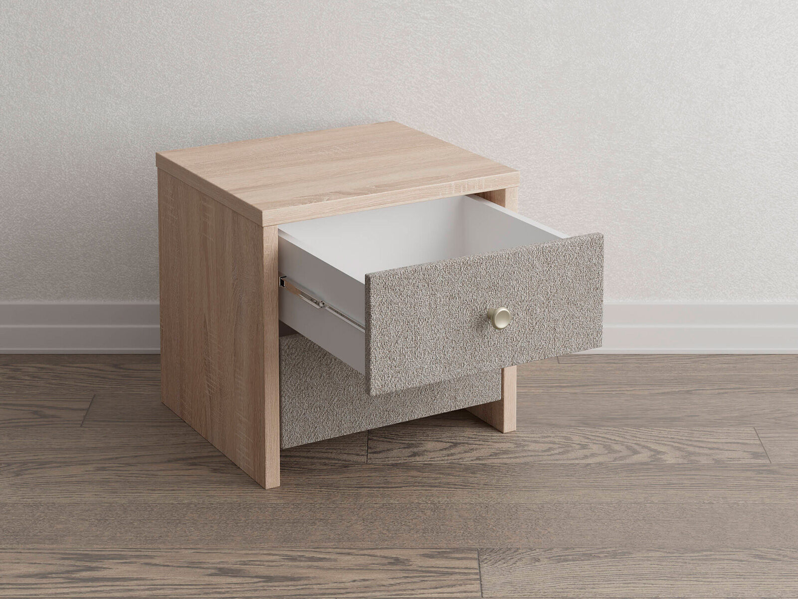 Прикроватная тумба с выдвижными ящикам сочетается с любыми моделями кроватей. Прямые углы, лаконичные металлические ручки, увеличенная толщина плиты ЛДСП 25 мм. Шариковые направляющие без доводчика. Фасады выдвижных ящиков выполняются в любой ткани на выбор. Стильная и практичная тумба прекрасно дополнит собой как кровать в полностью мягком исполнении, так и для комбинированных моделей из мягкого изголовья с ламинированными царгами.