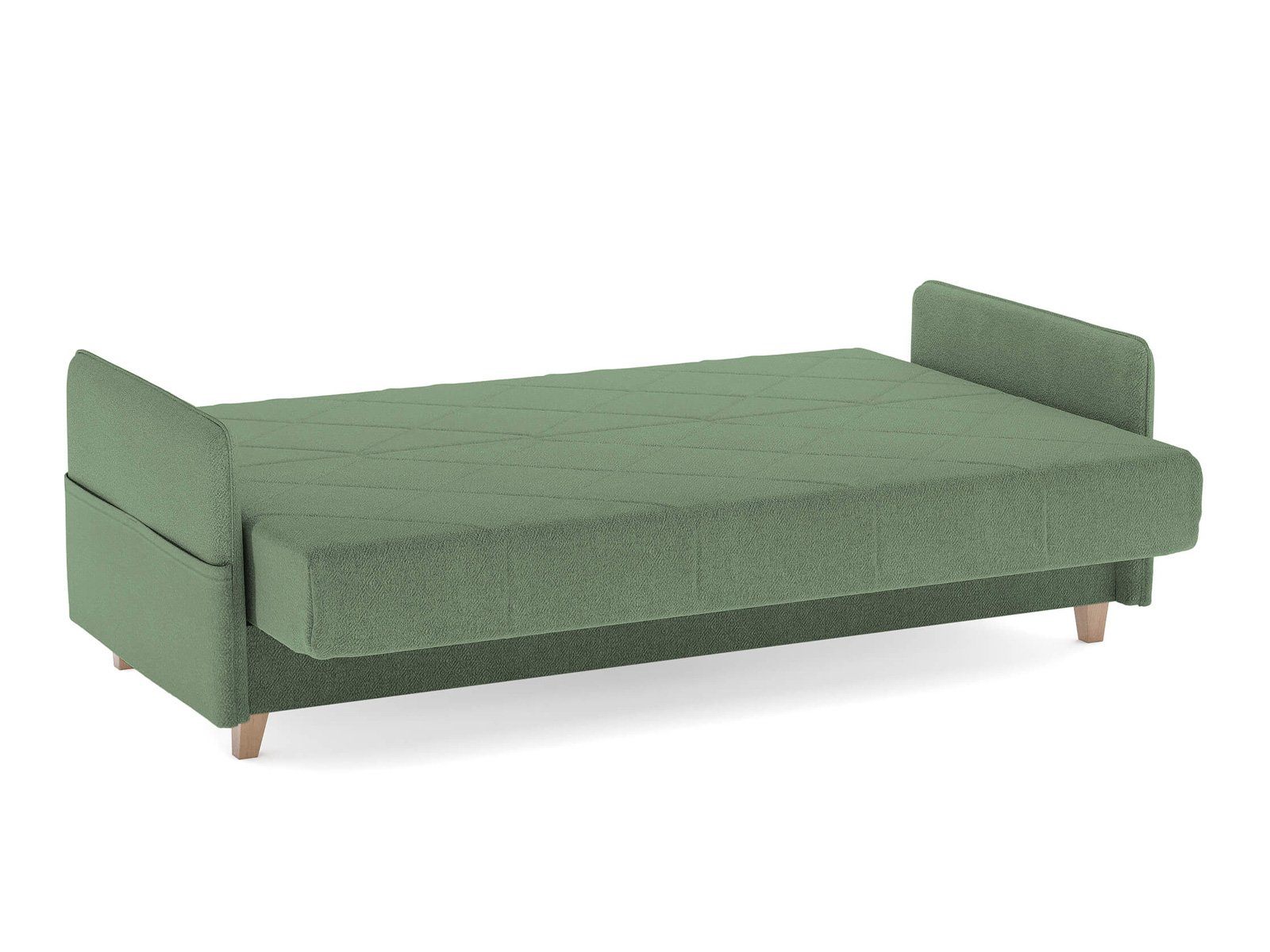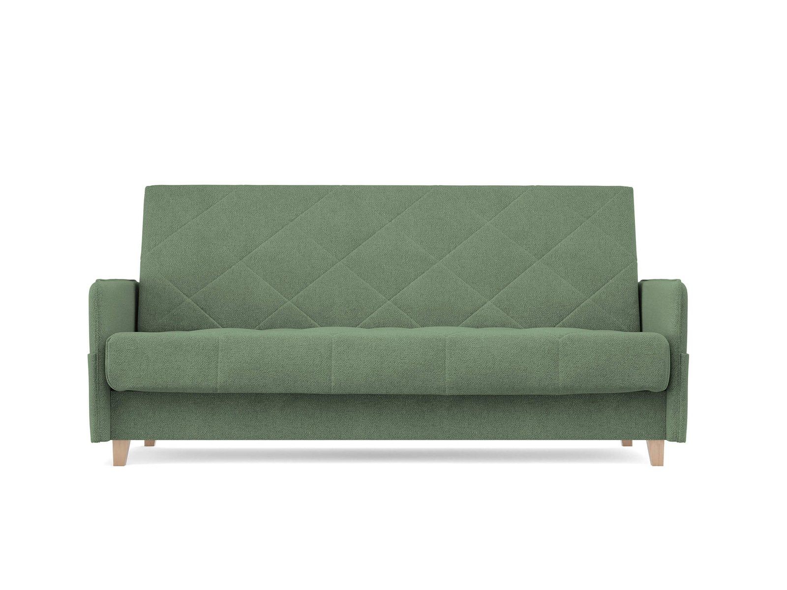 Диван для сна в скандинавском стиле с механизмом трансформации «клик-кляк» и коробом для хранения. Основание дивана металлическое, с ламелями. Матрас анатомический с независимым пружинным блоком. Благодаря съемному чехлу с объемной стежкой в форме ромбов, диван органично впишется в современные интерьеры в скандинавском стиле и стиле минимализм.