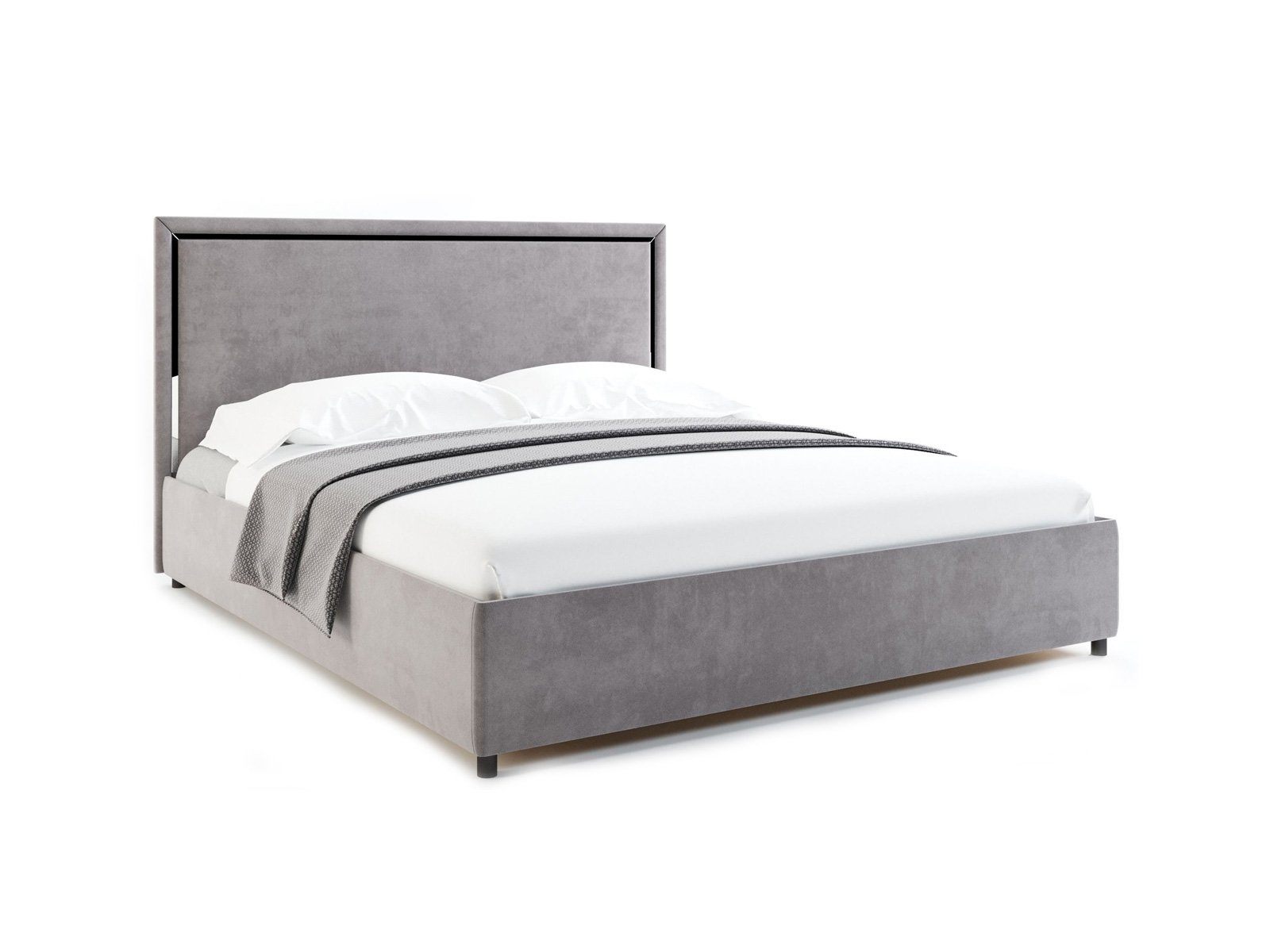 Спейс — кровать в современном стиле. Прямое мягкое изголовье украшено тонкой зеркальной вставкой по периметру.