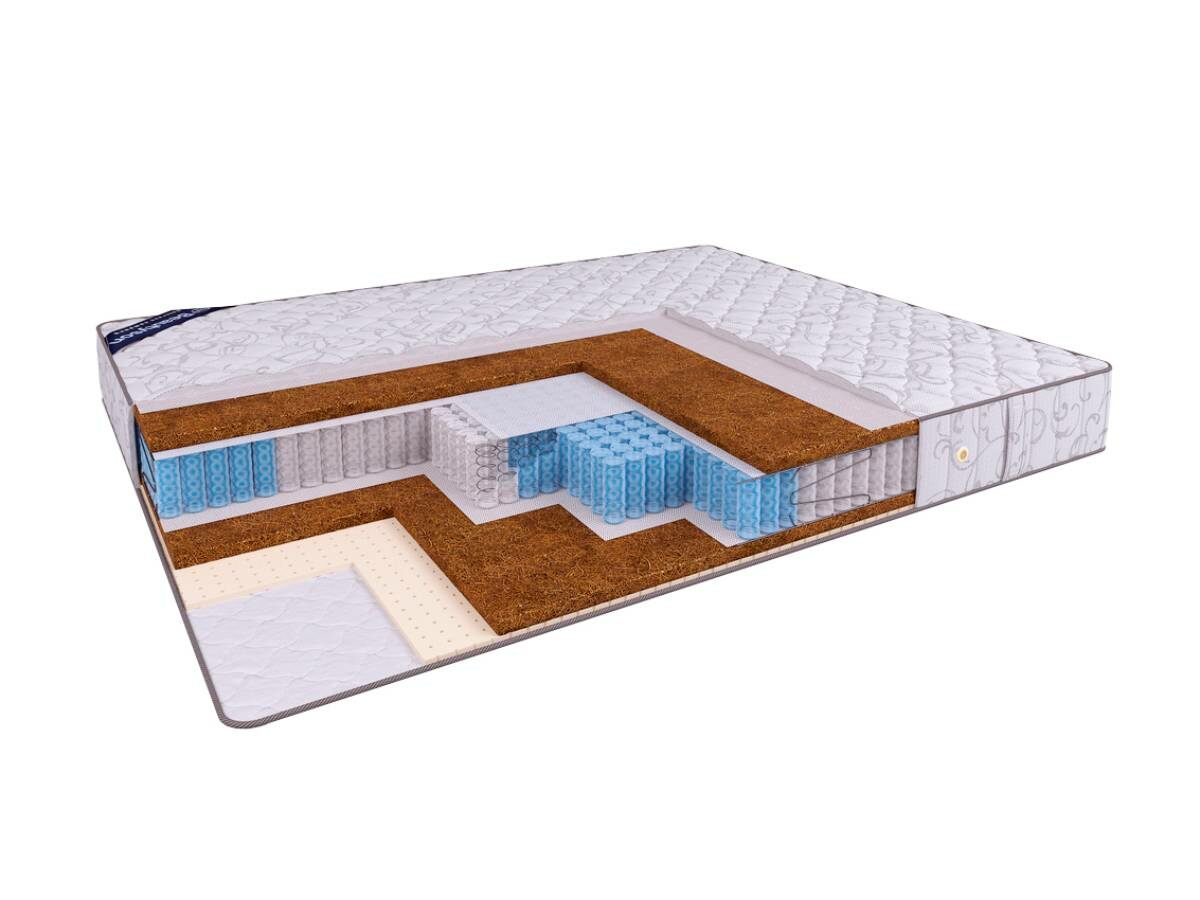 Жёсткий матрас Hit Anatomic S1200 выполнен на основе пружинного блока "Мультипакет" (1200 пружин на спальное место), обеспечивающего оптимальную анатомическую поддержку спящему человеку. Пять различных зон жёсткости в пружинном блоке матраса соответствуют различным зонам тела человека, обеспечивая равномерное распределение веса тела и нахождение позвоночника в естественном положении. Матрас имеет выраженную жёсткость поверхности, однако с одной из сторон его конструкция оснащена смягчающим слоем натурального латекса, благодаря чему данная сторона становится немного мягче. Различающаяся жёсткость сторон позволит Вам обеспечить более точную подстройку степени жёсткости матраса под Ваши собственные предпочтения.