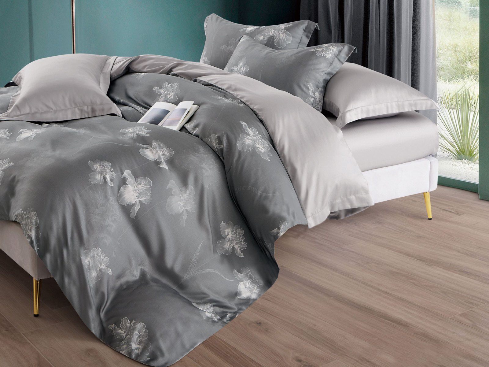 Что может быть многогранней, чем 50 оттенков серого? Игра света и тени на шелковой ткани подчеркивает утонченность и загадочность хозяйки спальни.