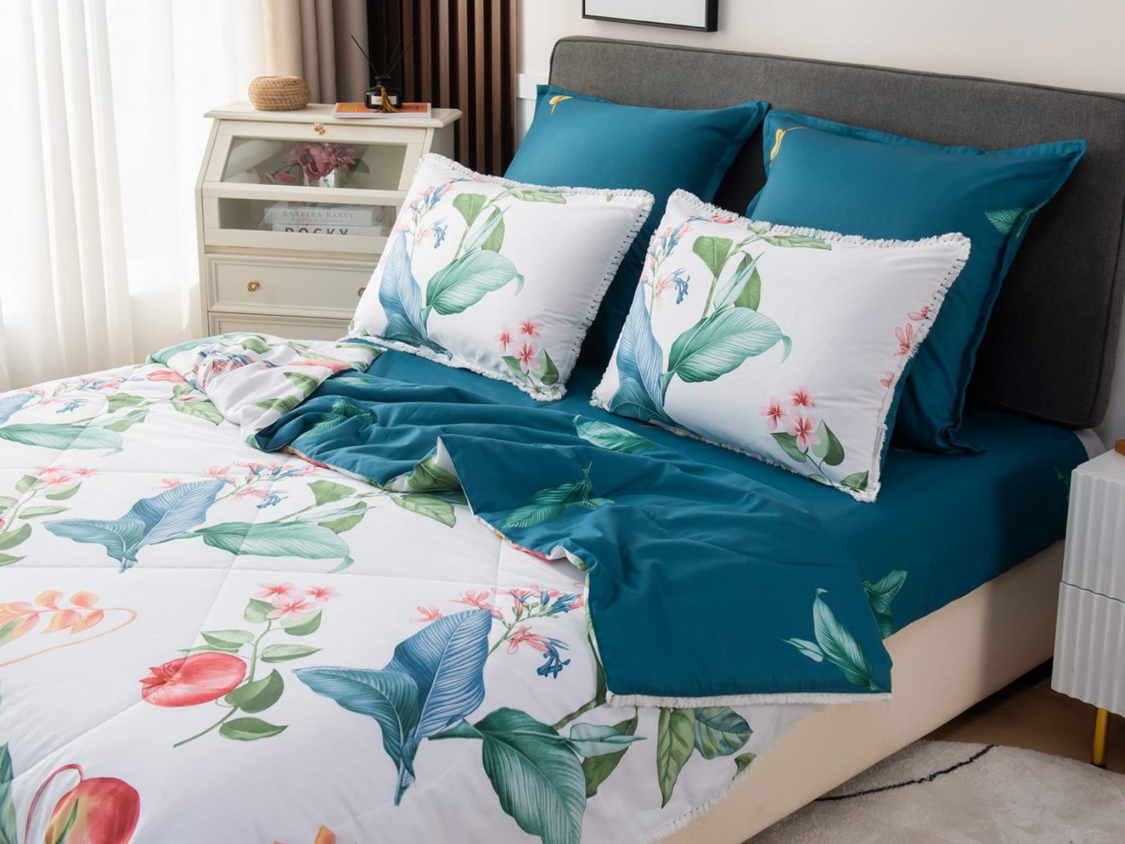 В комплекты комфортеров с одеялом Бернадетт входят наволочки, простыня и легкое всесезонное одеяло. Оцените это современное и очень удобное решение, которое идеально подходит тем, кто не любит возиться с пододеяльниками.