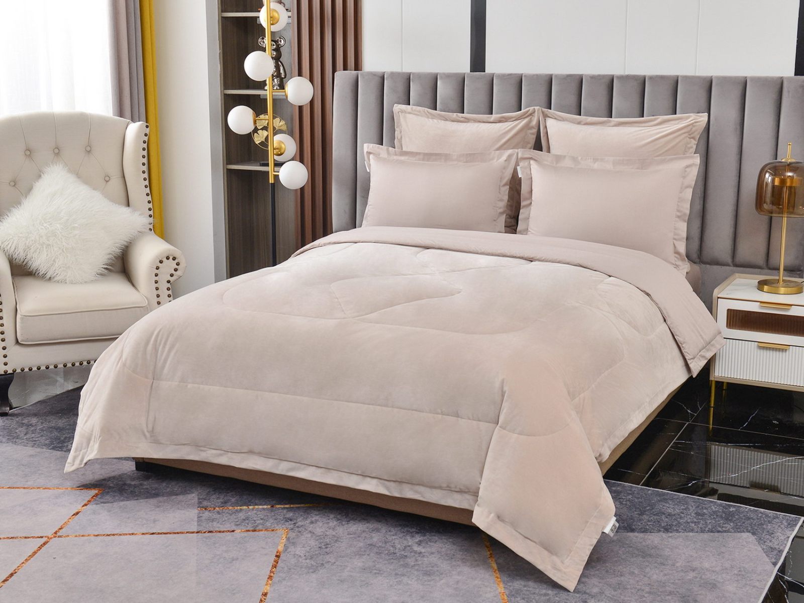 Изготовленный из качественной вискозы и мягкого хлопка трендовых цветов, комплект создаёт приятное ощущение на коже. Его экологичное наполнение из 100% эковолокна обеспечивает гипоаллергенные свойства, подарив вам спокойные и уютные ночи.