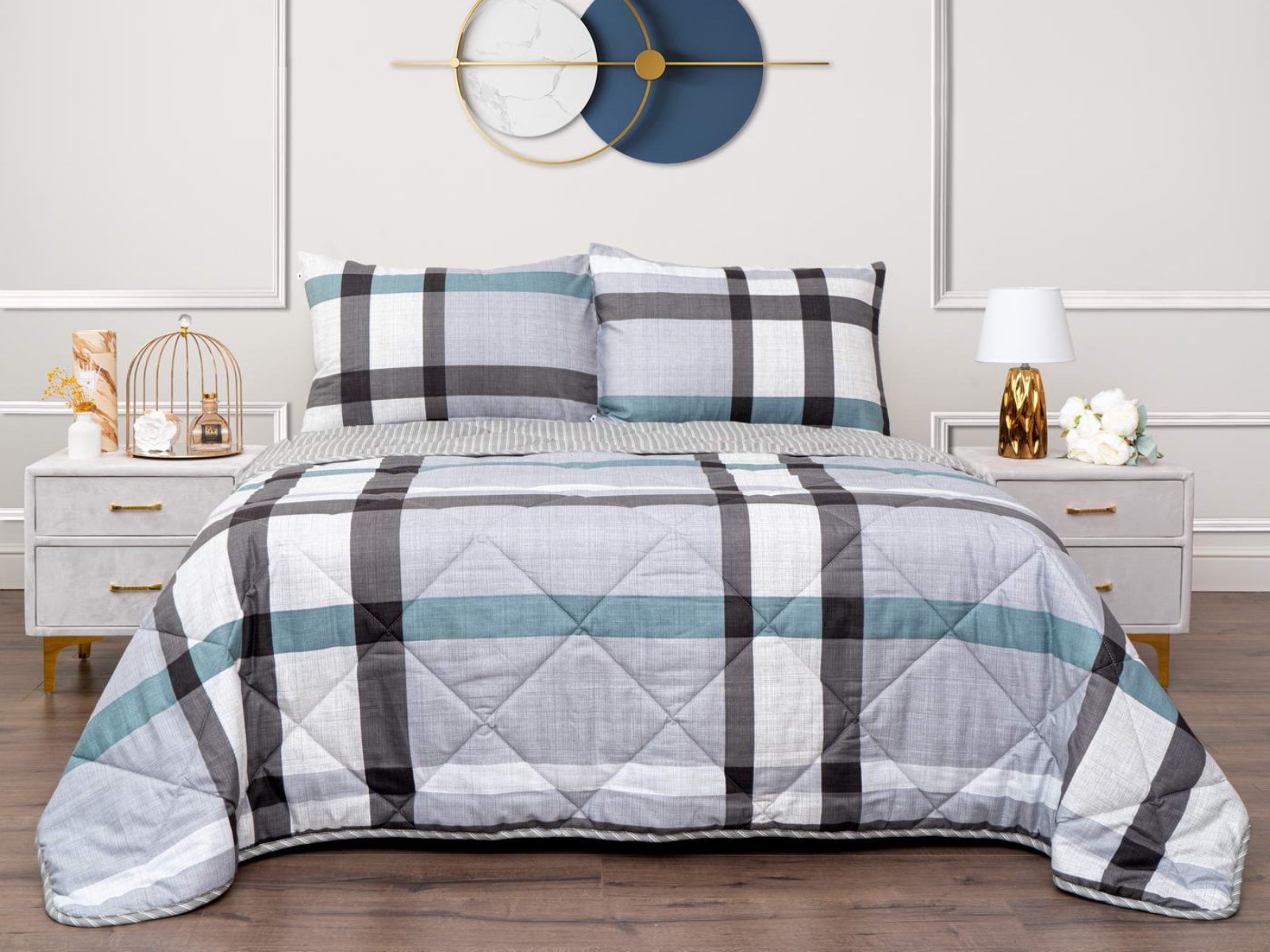 Комплект постельного белья с одеялом Массимо – это прекрасное сочетание цены и качества. Комплект порадует многообразием цветов и принтов. Современные принты в стиле хайтек или цветочные узоры – вы с легкостью подберете нужный комплект! Двустороннее всесезонное одеяло можно стелить лицевой или оборотной стороной, в зависимости от настроения. Комплекты Массимо выполнены из ткани экокоттон, такая ткань произведена из органических волокон хлопка и вискозы, в процессе выращивания которых не использовались химические удобрения. Микроволокно, которое используется в качестве наполнителя для одеял, подойдет для любого температурного режима, под ним не будет жарко или холодно!