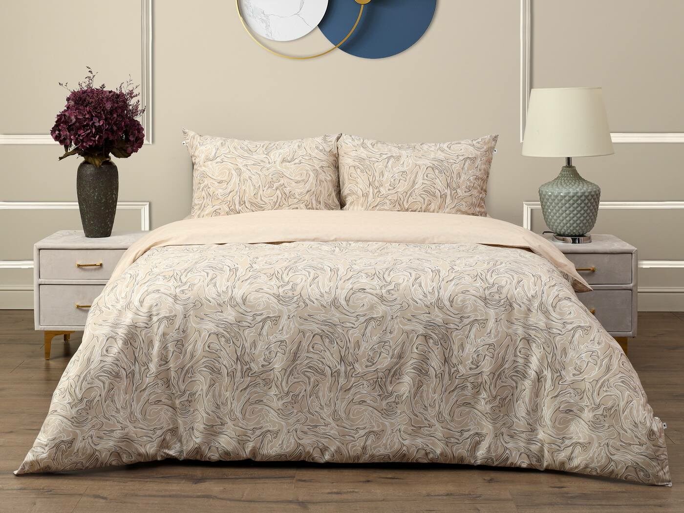 Комплект Мэгги легко стирается в обычной машине в бережном режиме и также легко гладится.