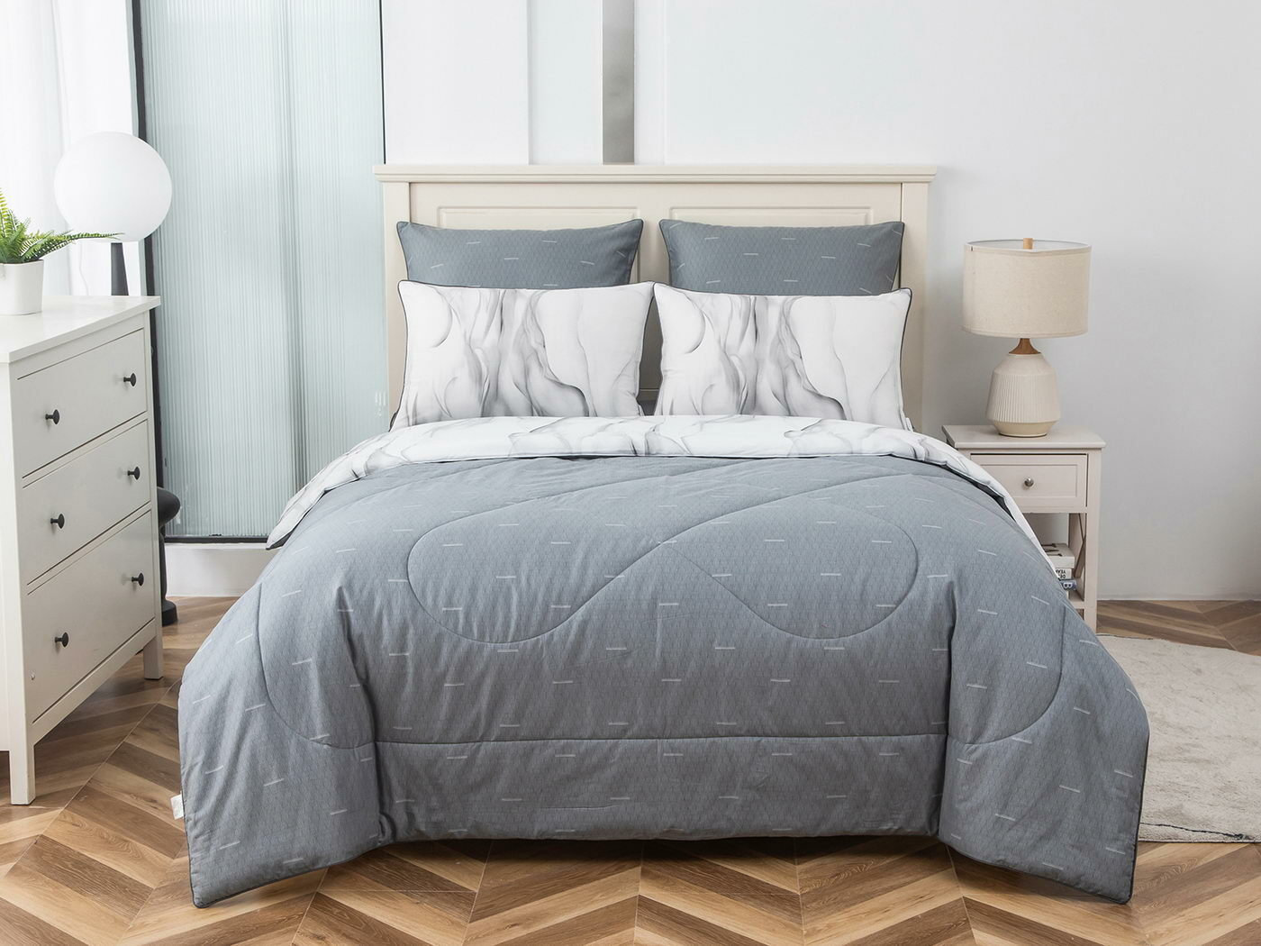 Особенность: двусторонняя модель, наволочки и одеяла декорированы кантом.
