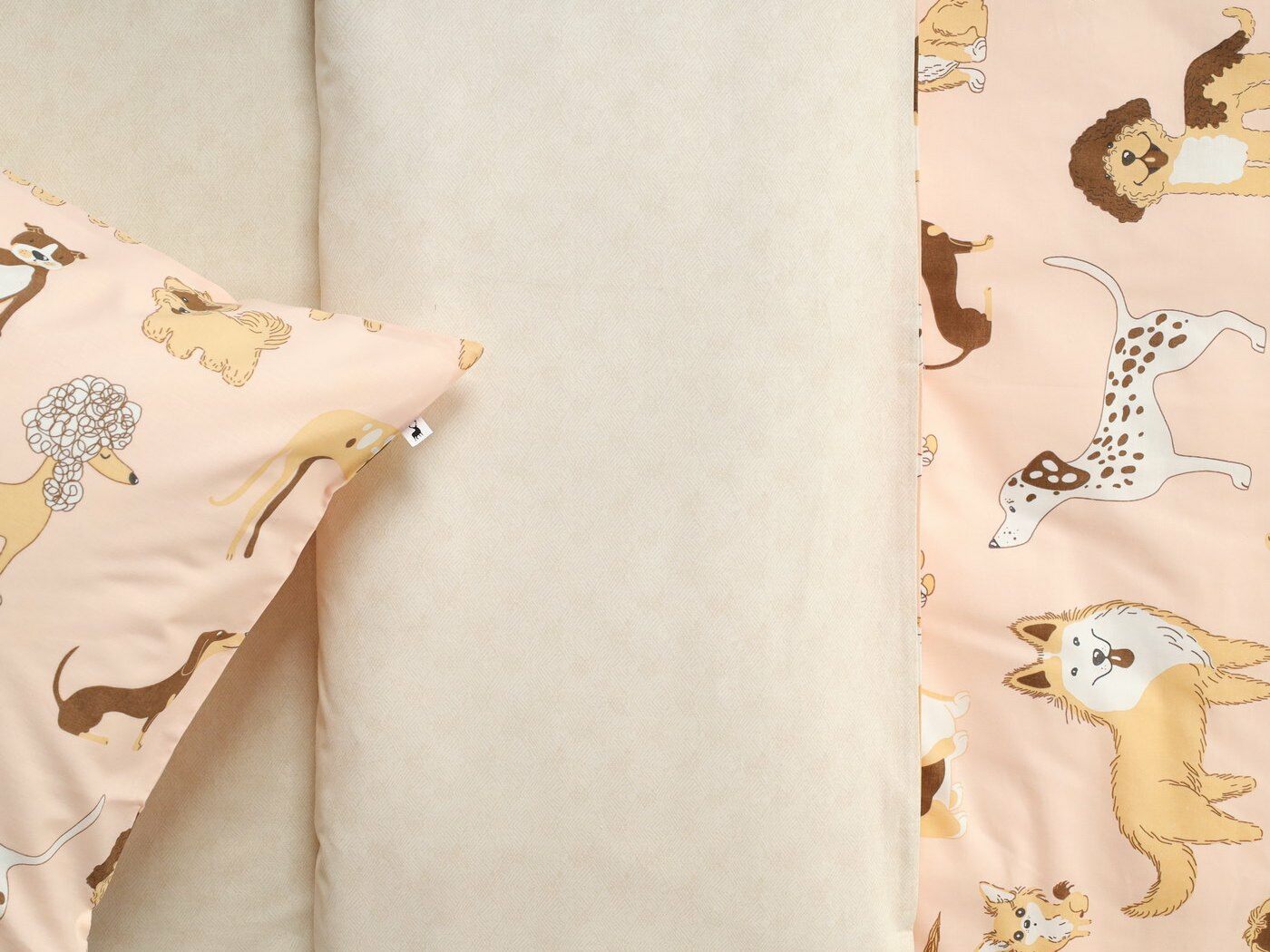 Пододеяльник –двусторонний: верх из ткани А (принтованная ткань), обратка из ткани В (однотонная рогожка), с потайной молнией.