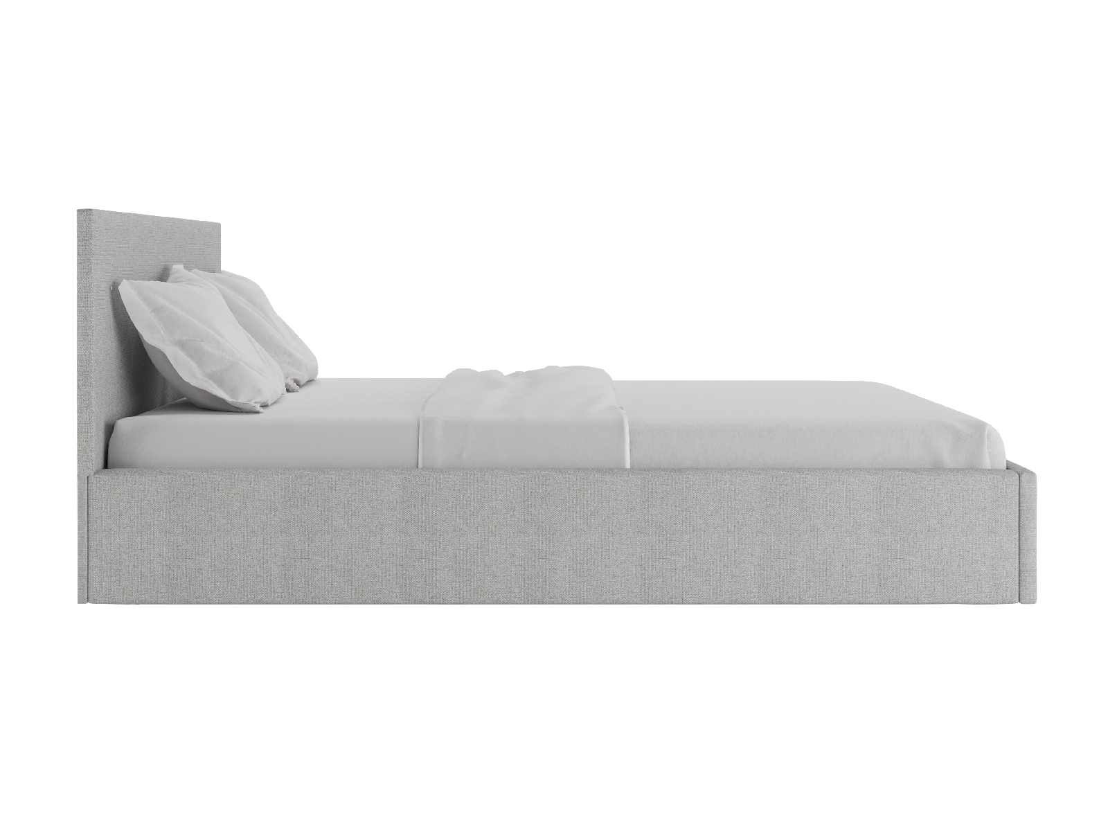 Кровать комплектуется металлическим основанием с подъемным механизмом, под которым находится вместительный бельевой ящик для хранения сезонных вещей и постельных принадлежностей.
