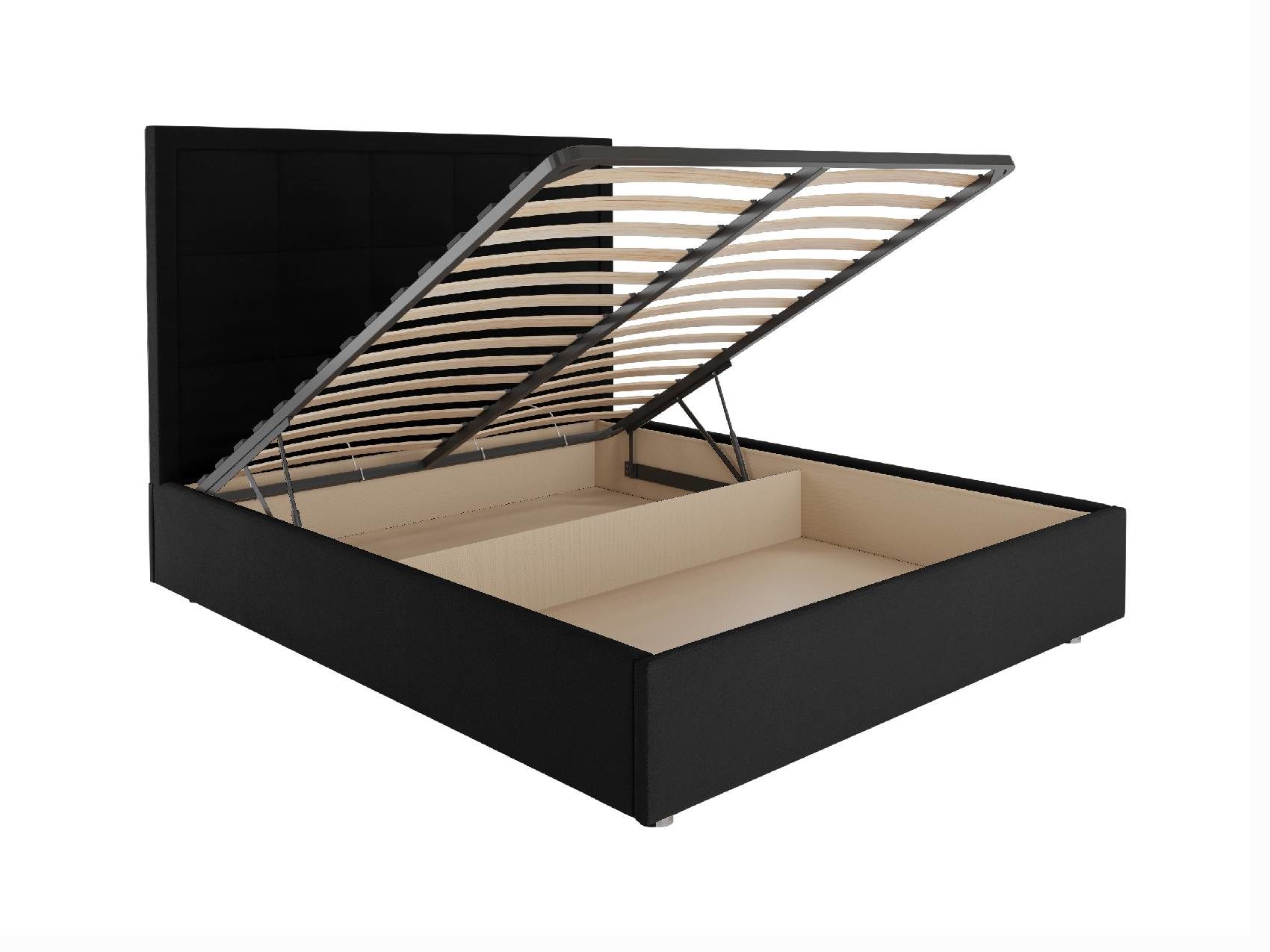В комплектации с подъемным механизмом кровать имеет вместительный бельевой короб с двумя отделениями.