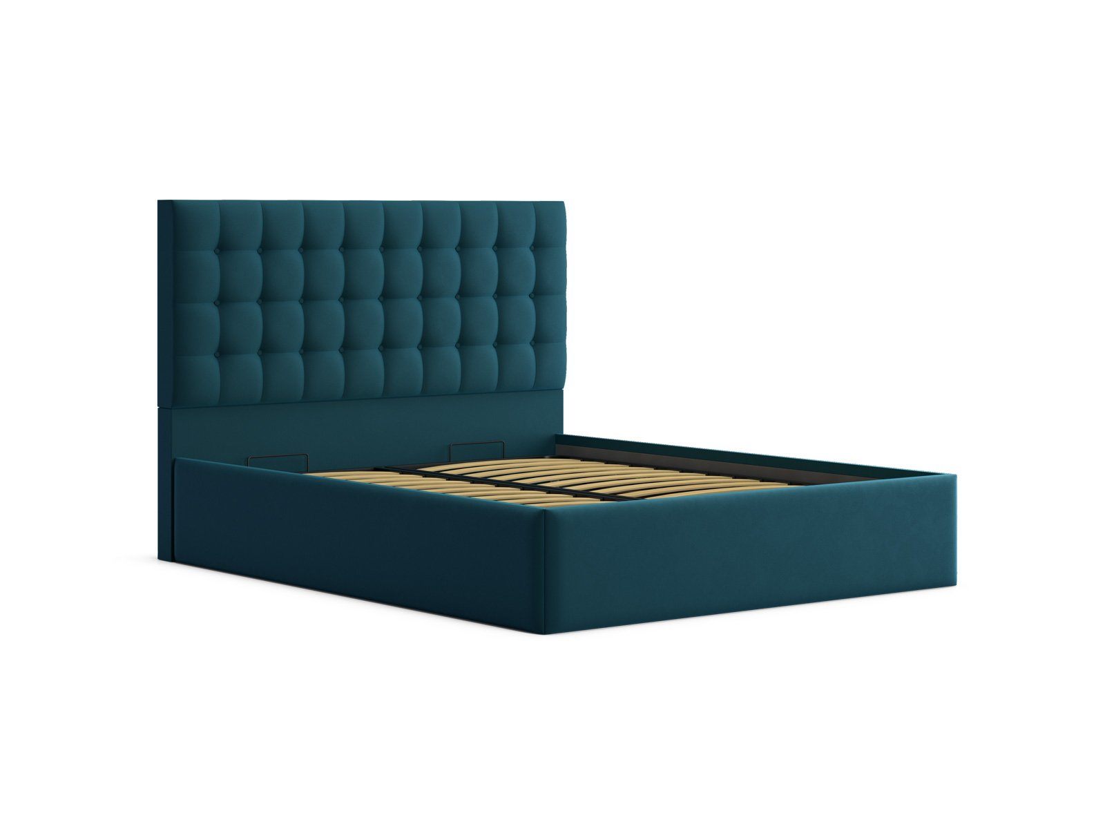 Мягкая кровать с обивкой из велюра.