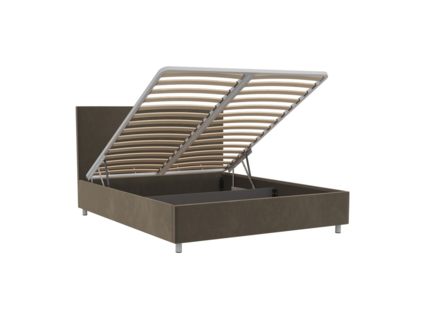 Кровать оснащена подъемным основанием с ламелями, под которым находится вместительный ящик для хранения. Рекомендуемая высота матраса от 13 см, вес матраса до 50 кг.
