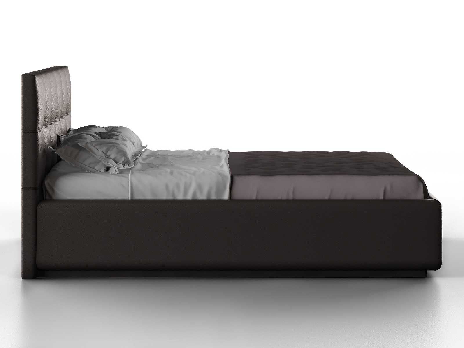 Кровать укомплектована IQ с подъемным механизмом и ящиком для белья без дна (дополнительная платная опция - дно к ящику IQ из HDF (ХДФ). Каркас кровати на цоколе, декоративный чехол на цоколе съёмный. Глубина ящика для белья - 30 см, без ограничения нагрузки на ящик.