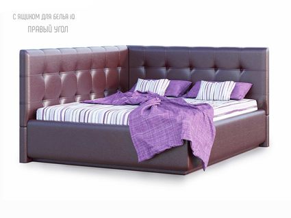 Для определения варианта исполнения угла требуется "встать" по длинной стороне угловой кровати, лицом к длинной боковине и определить, с какой стороны будет изголовье: изголовье со стороны левой руки - вариант исполнения "левый", изголовье со стороны правой руки - "правый" (на фото представлена кровать с исполнением угла — левый).