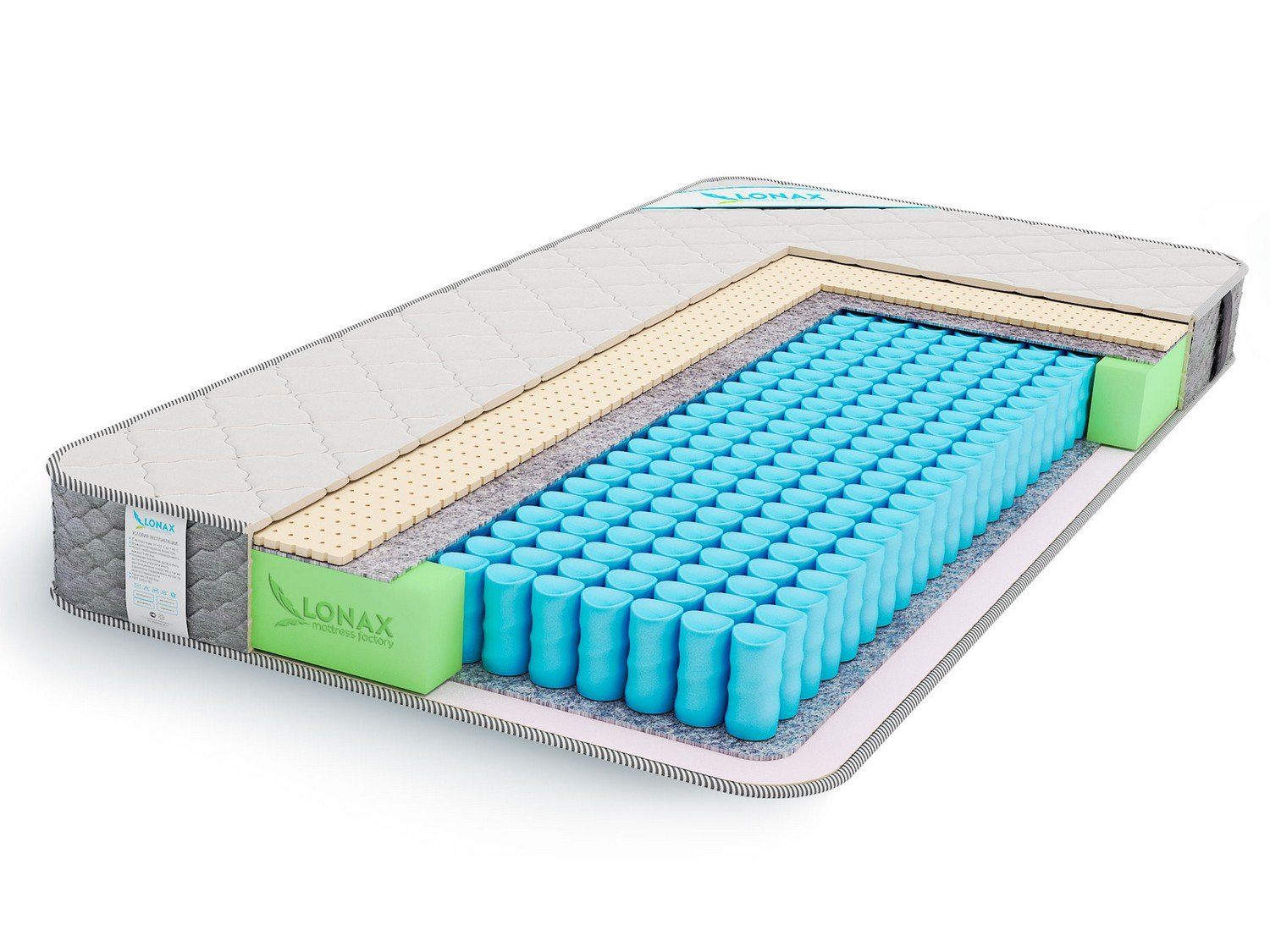 В основе одностороннего матраса Light Smart лежит независимый пружинный блок TFK Light, в котором установлено 210 пружинок на один квадратный метр. С одной стороны от блока расположен комфортный слой мягкого натурального латекса, с другой - спанбонд, защищающий чехол от контакта с металлическими пружинами. Чехол сшит из высококачественного трикотажа и отделан серебристо-черным кантом.