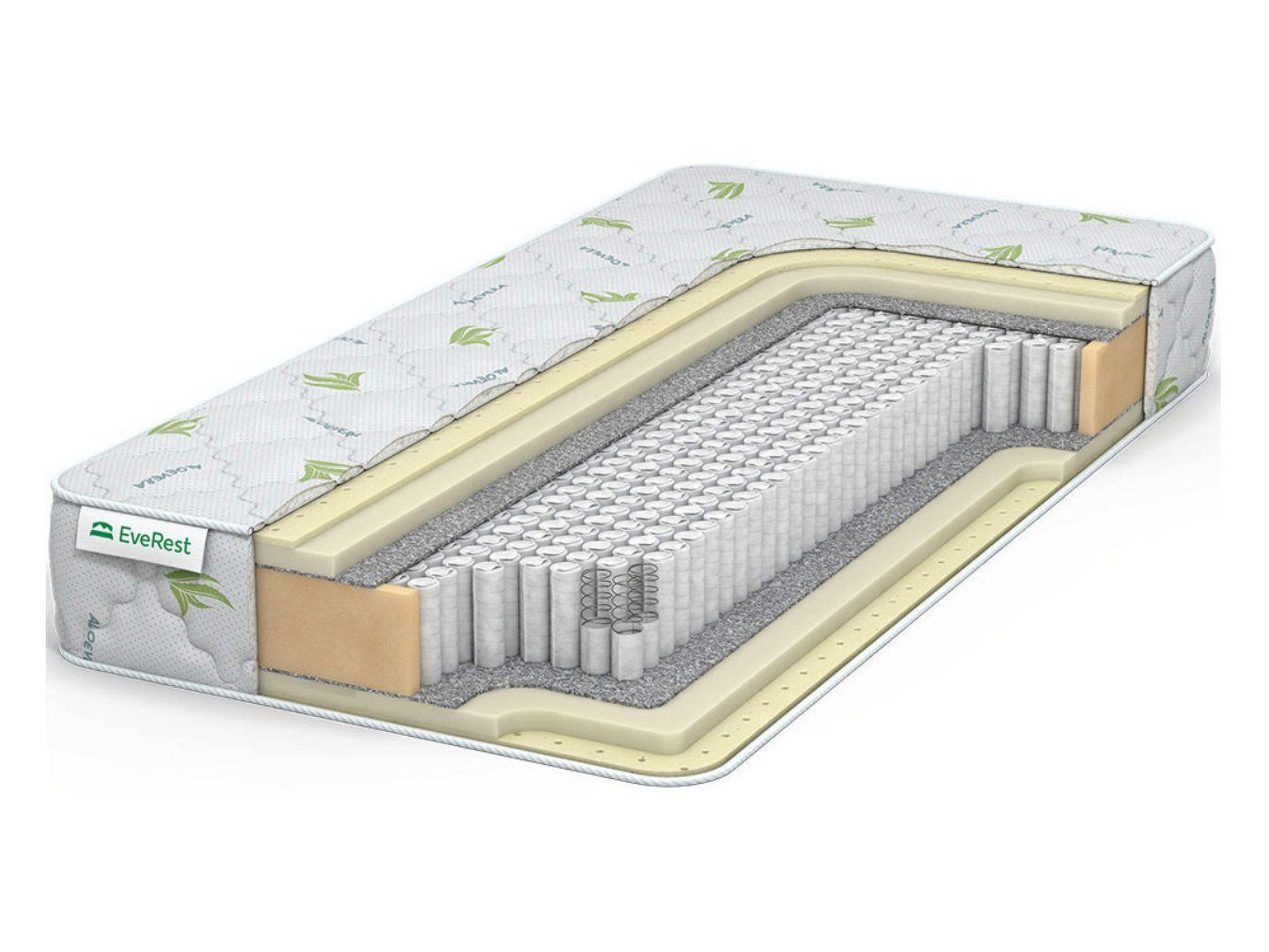 Покрытие матраса изготовлено из нежной трикотажный ткани. Материал пропитывается составом Aloe Vera для стойкого антибактериального эффекта.
