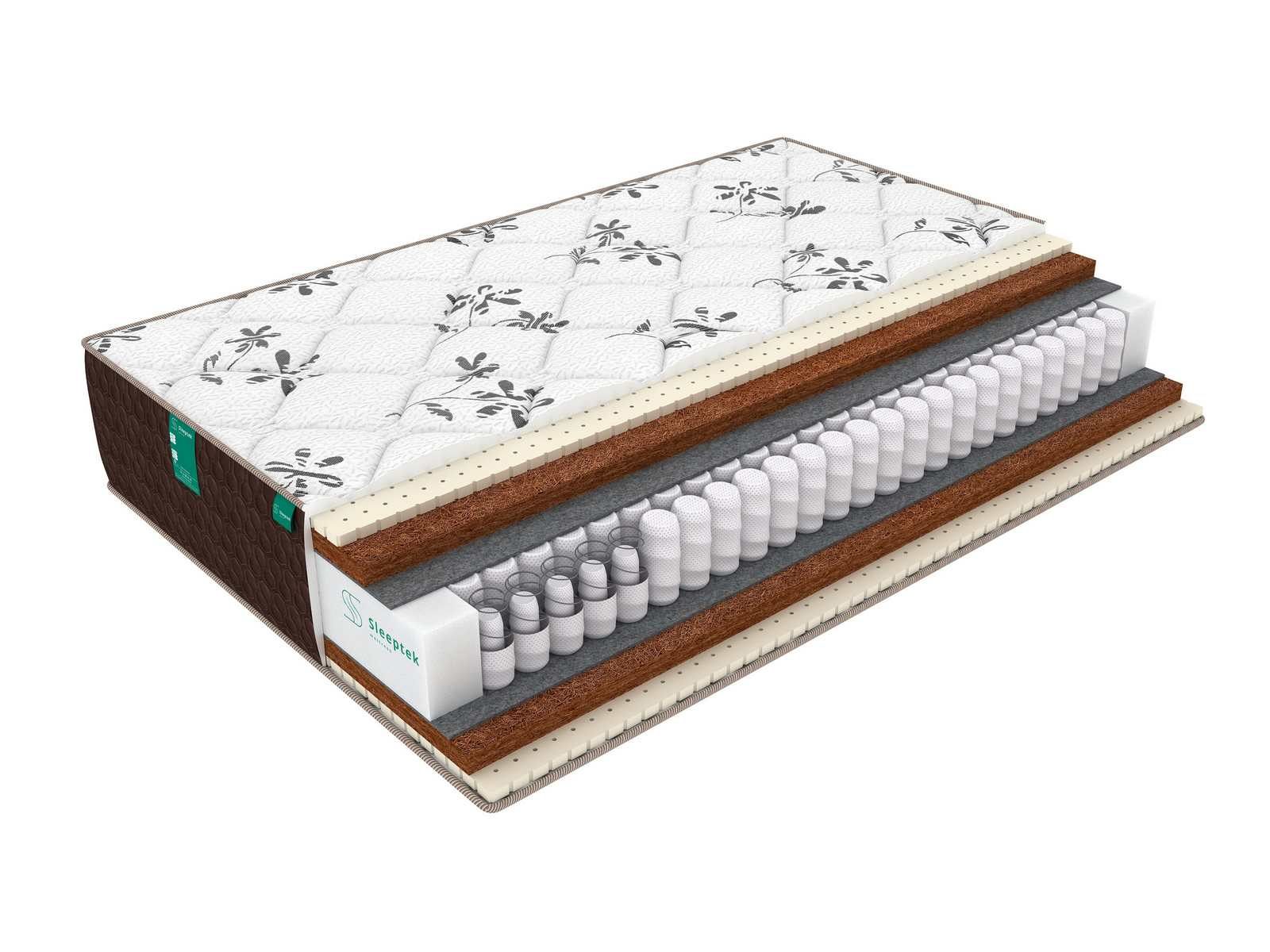 Блок пружин отделен от слоев наполнителей термовойлоком, который не позволяет пружинам повреждать наполнители и продлевает срок службы матраса.