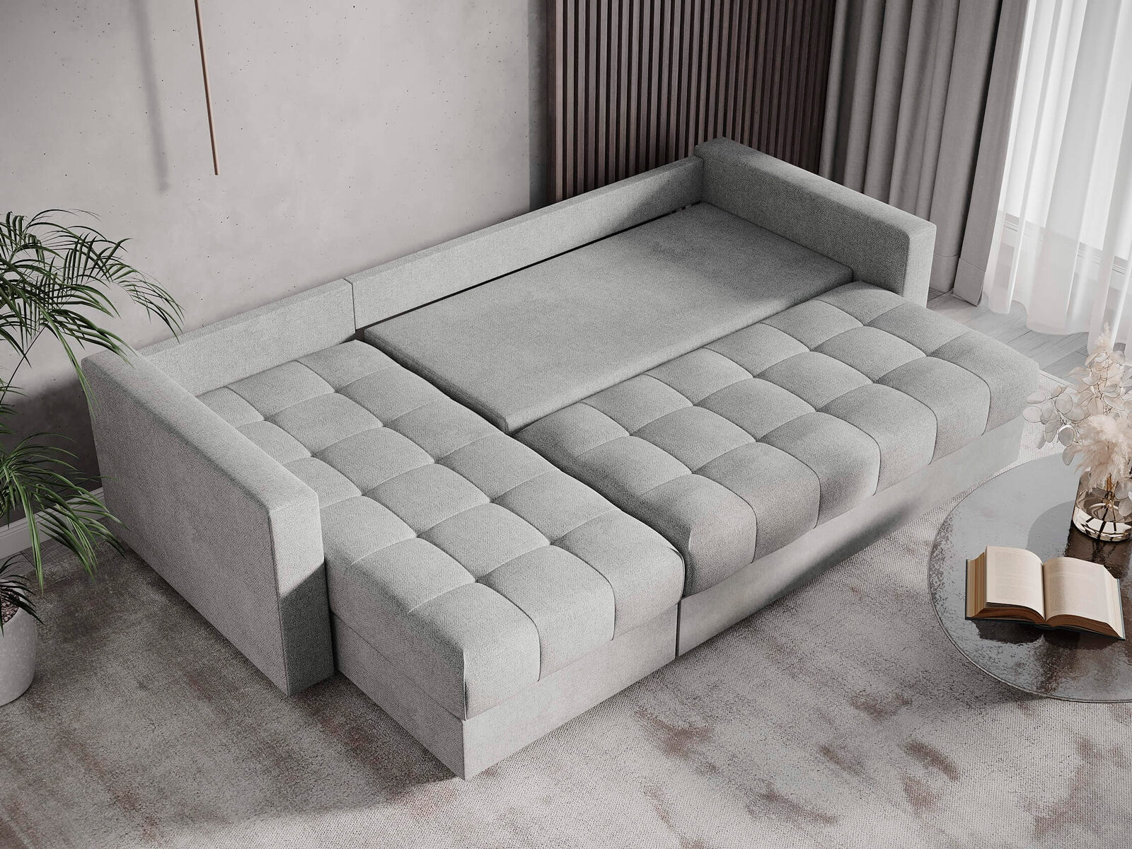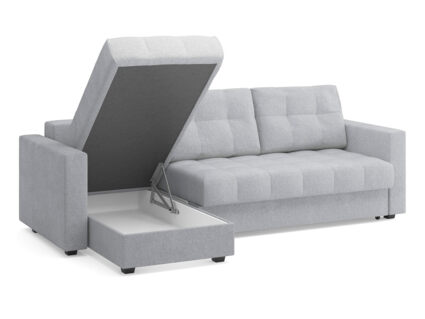 Диван имеет угловую конфигурацию, что позволяет ему идеально вписаться в любой интерьер. Угловая секция, или оттоманка, устанавливается как справа, так и слева, в зависимости от предпочтений и особенностей планировки комнаты, делая диван универсальным решением для любого пространства. Модель оснащена вместительным бельевым коробом, что позволяет эффективно использовать пространство и хранить постельные принадлежности или другие вещи. Матрас средней жесткости обеспечивает оптимальную поддержку и комфорт во время сна, что важно для ежедневного использования.