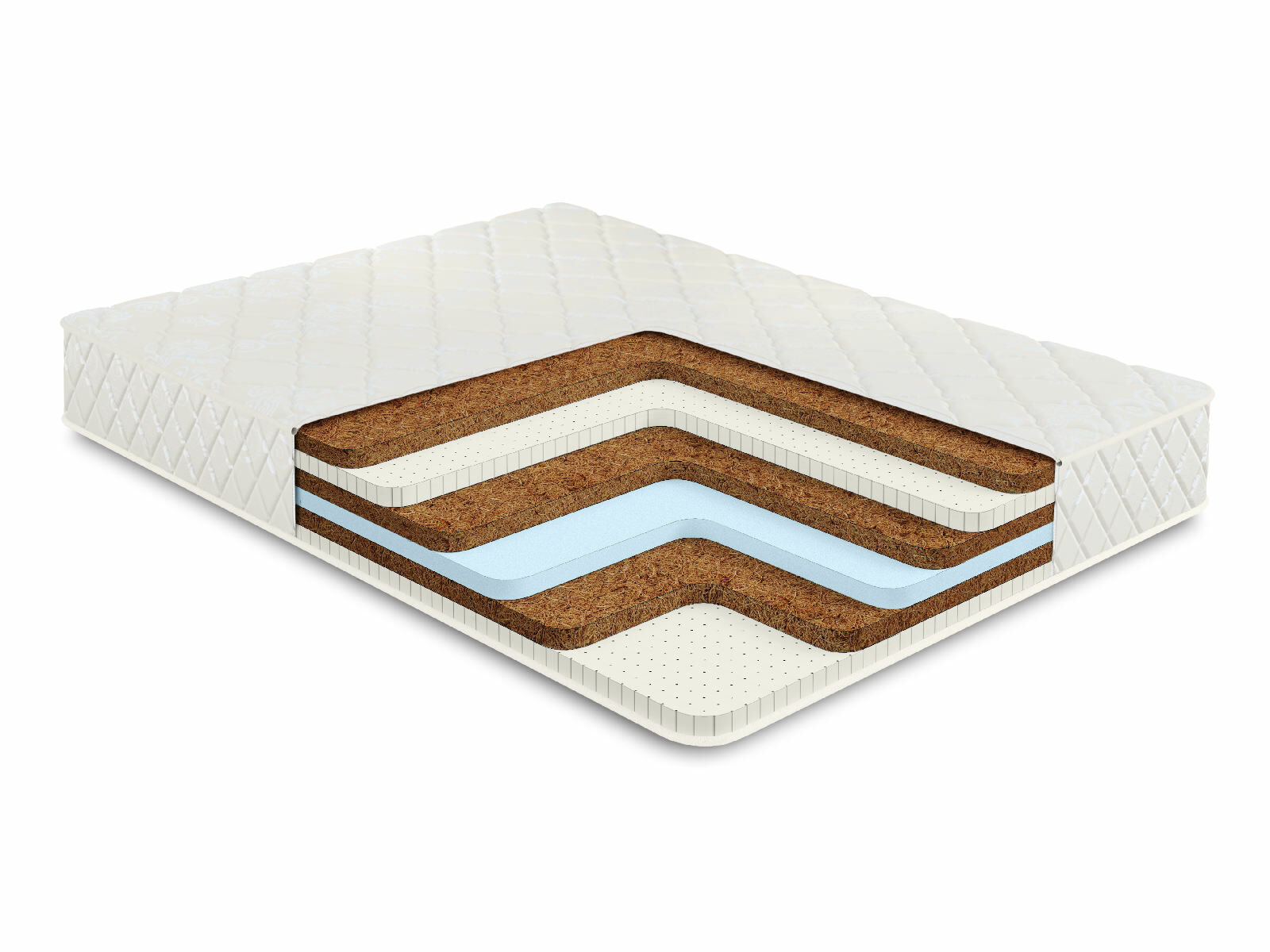 Кокосовое волокно с натуральным латексом придает жесткость, экологически чистый материал, который прекрасно вентилируется.