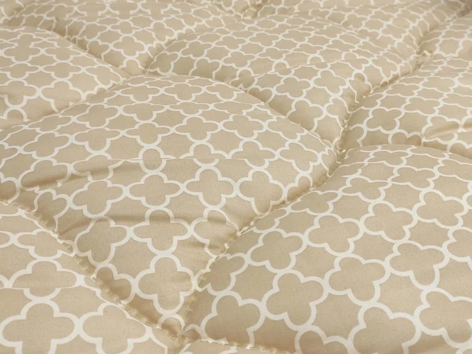 Чехол одеяла выполнен в спокойном бежевом оттенке с ненавязчивым геометрическим орнаментом. В его состав входят хлопок, который обладает хорошей воздухопроницаемостью и полиэстер, делающий ткань очень прочной и долговечной. Уникальная технология безниточного скрепления Ультрастептм не только надежно фиксирует наполнитель внутри чехла, но и добавляет изделию объем.