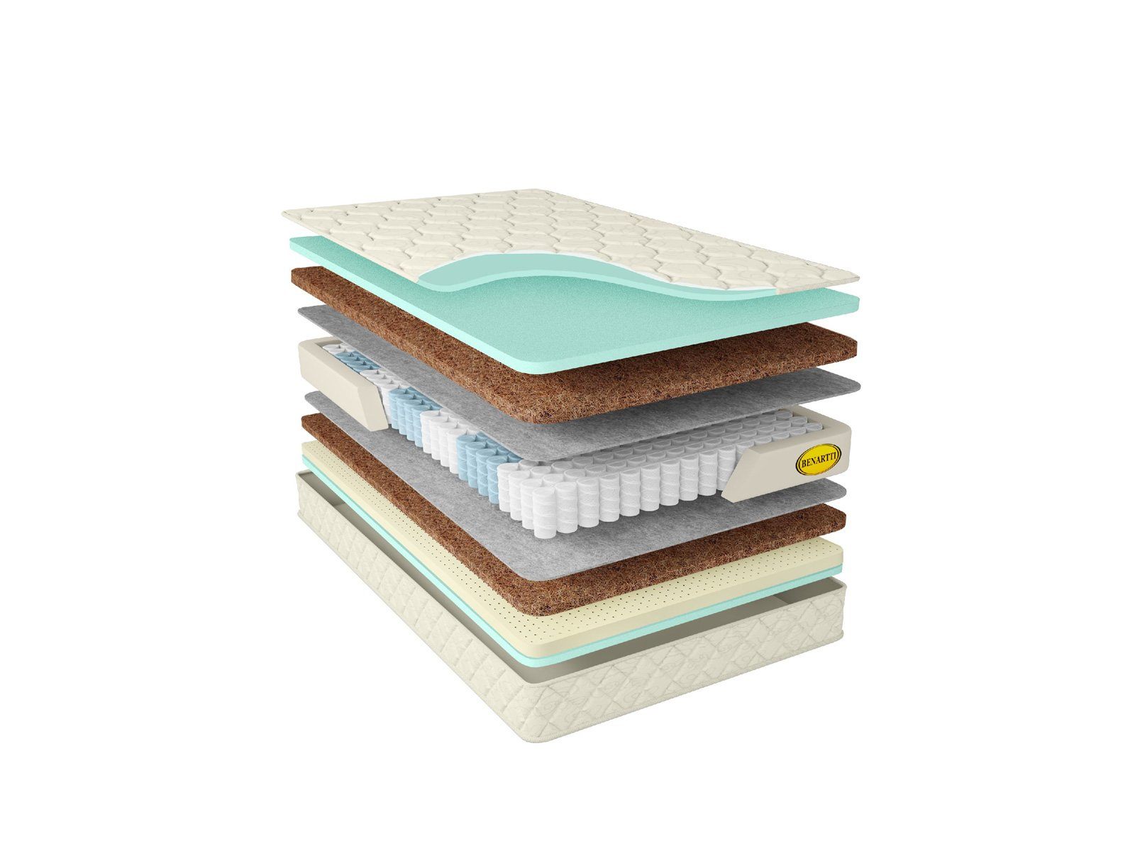 Слои натурального с одной стороны и искусственного латекса с другой приятно смягчают поверхности матраса. Они обеспечивают комфорт и адаптивность. Благодаря их работе матрас бережно подстраивается под анатомию человека, что приводит к быстрому расслаблению и повышению качества сна.