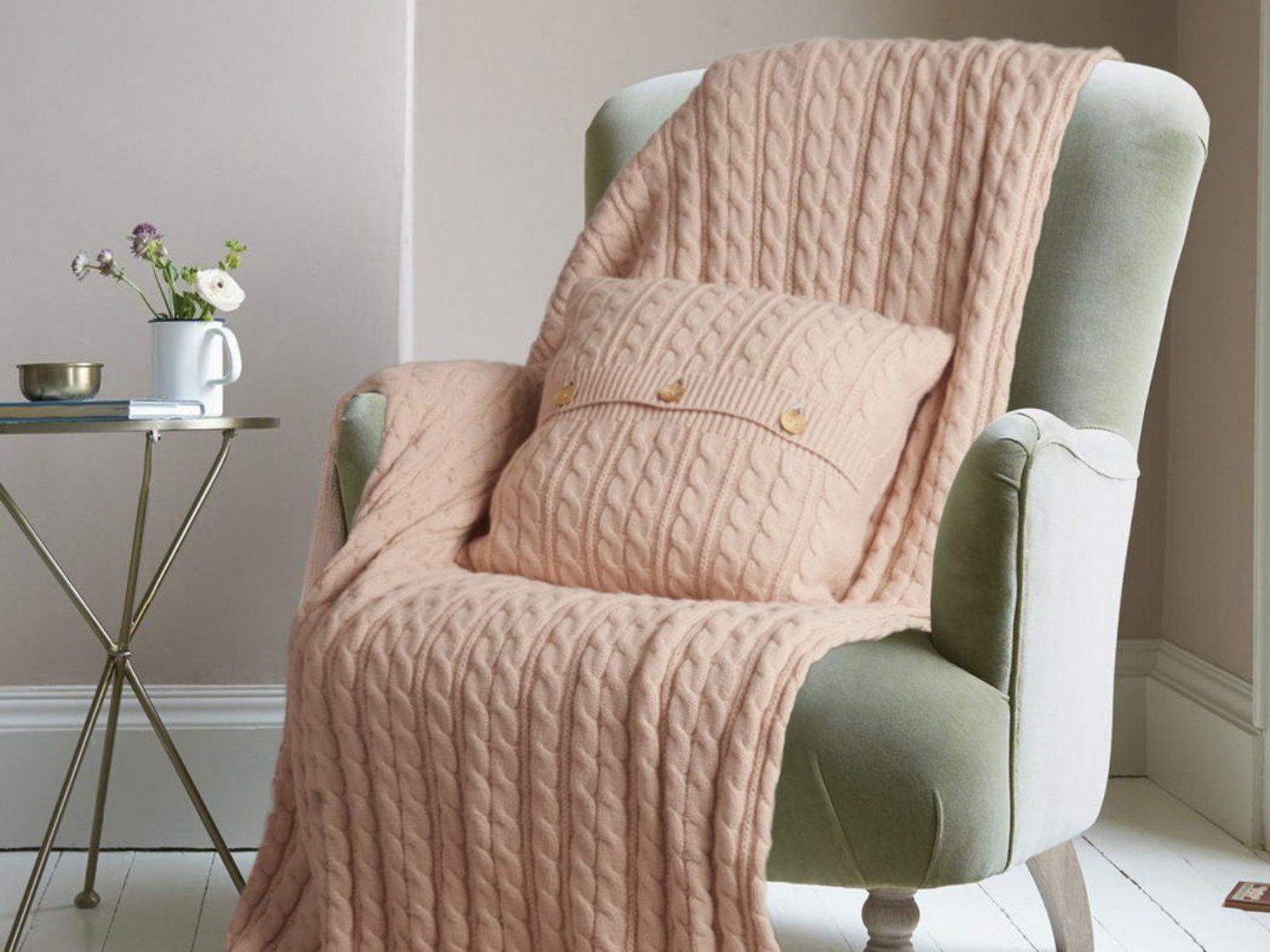 Он очень мягкий, не колючий, шерсть согревает, а структура вязки хорошо пропускает воздух, поэтому укрываться таким пледом комфортно в любую погоду.