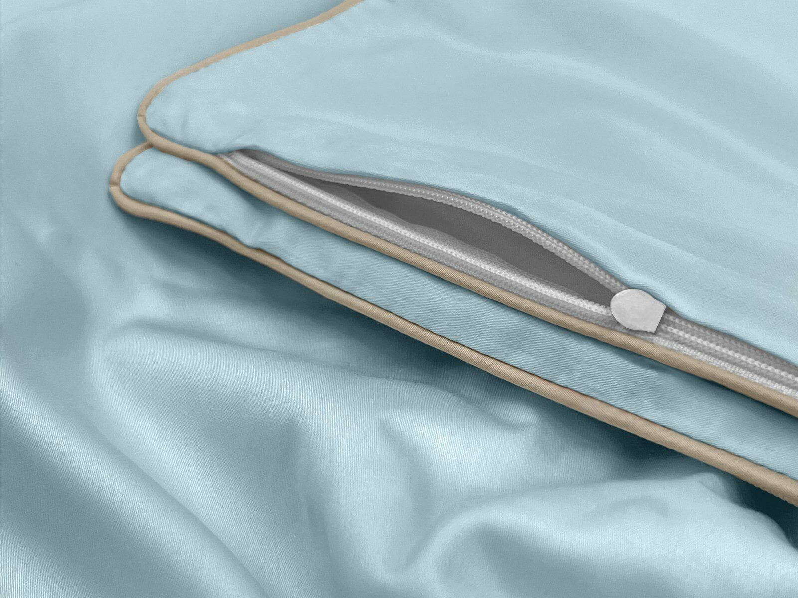 Пододеяльник украшен декоративным кантом по периметру и имеет удобную молнию по всей ширине, что значительно упрощает процесс его замены. Классический, сдержанный цвет кофейного напитка латте выглядит одновременно строго, элегантно и очень уютно.