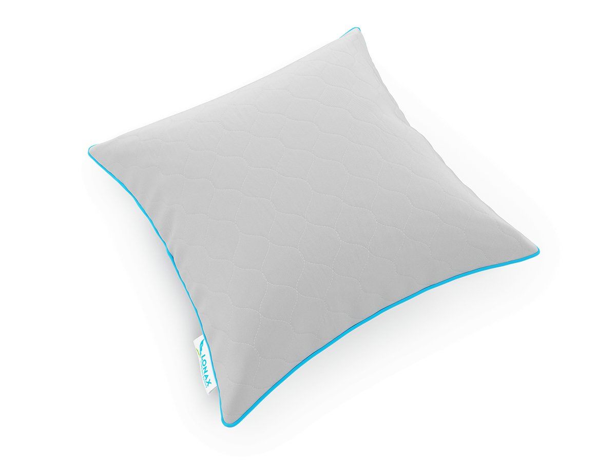 Подушка Tik средней жесткости. В качестве наполнителя используются гранулы из натурального и искусственного латекса. Чехол изготовлен из серого жаккарда плотностью 164 гр/м2.