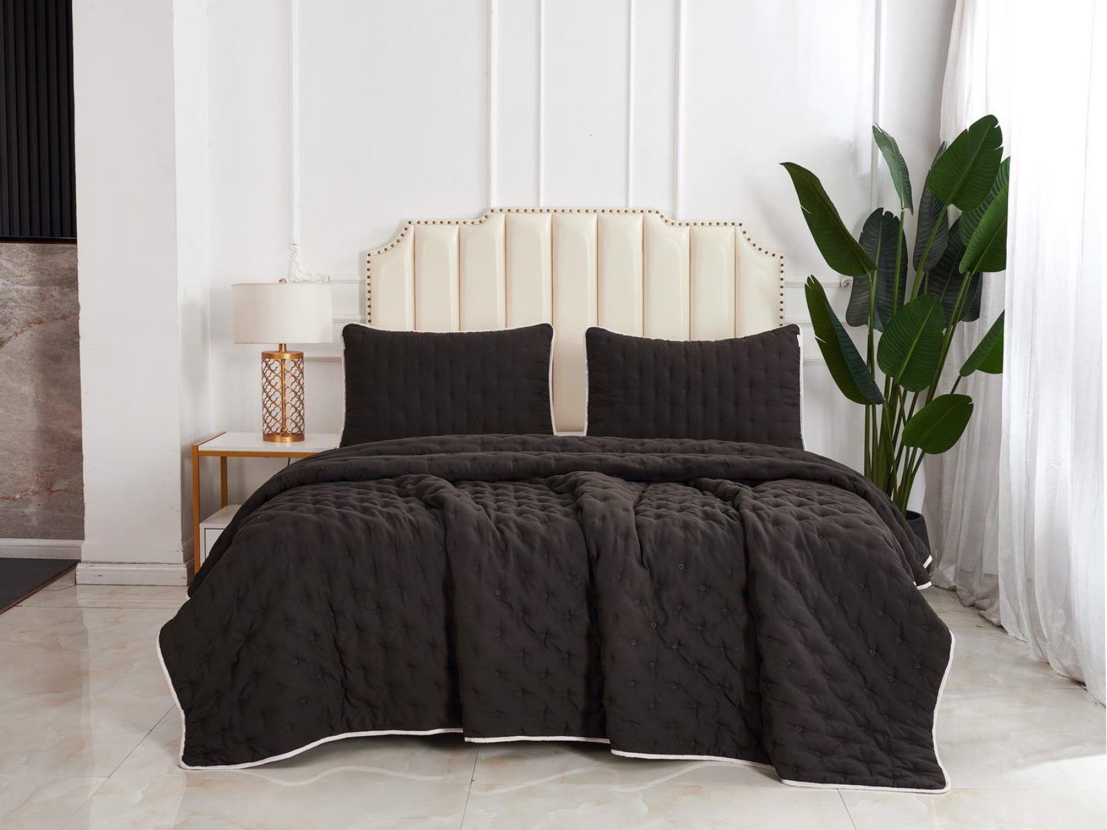 Двусторонние стеганные покрывала Броуди легкие и прочные. В комплект входят покрывало и одна либо две наволочки (50х70 см) из аналогичного материала в зависимости от размера. При желании покрывало можно использовать как легкое одеяло.