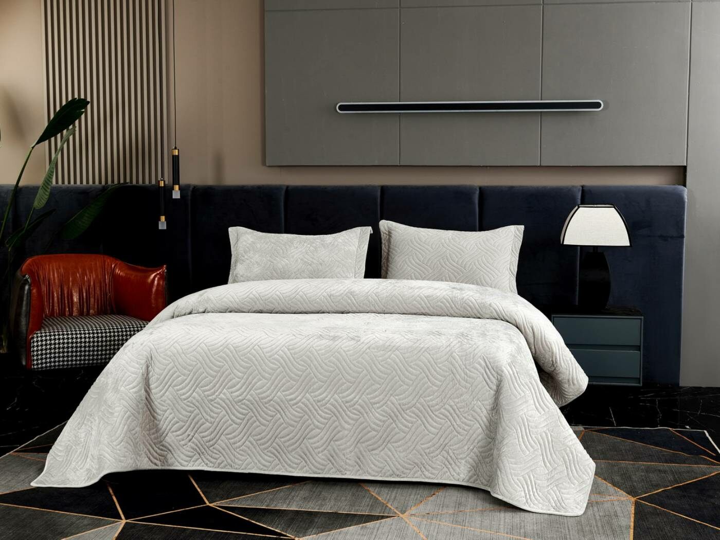 Покрывала «Деварта»: нежность и уют в вашем доме Окунитесь в мир комфорта и изысканности с новой коллекцией мягких бархатных покрывал «Деварта». Эти изделия станут настоящим украшением вашей спальни, добавив ей уюта и элегантности. Покрывала изготовлены из высококачественного бархата, который приятен на ощупь и обладает нежной бархатистой текстурой. Они устойчивы к износу и надолго сохраняют свой привлекательный внешний вид, яркость цвета и мягкость. Благодаря прочной и качественной декоративной стёжке «косичка» наполнитель надёжно зафиксирован внутри изделия. «Деварта» представлена в пяти оттенках: от тёплого бежевого до спокойного серо-голубого. Вы сможете подобрать идеальный вариант для вашего интерьера. Размерный ряд включает два варианта, что позволяет выбрать покрывало, которое идеально подойдёт для вашей кровати или дивана. В комплект входят две наволочки размером 50х70 см. Каждое покрывало аккуратно обшито кантом, а наволочки украшены милыми ушками шириной 5 см. Это придаёт изделиям особый шарм и делает их ещё более привлекательными. Не упустите возможность приобрести эти замечательные покрывала и создать в своём доме атмосферу тепла и уюта. «Деварта» подарит вам не только эстетическое наслаждение, но и незабываемые ощущения при каждом прикосновении.