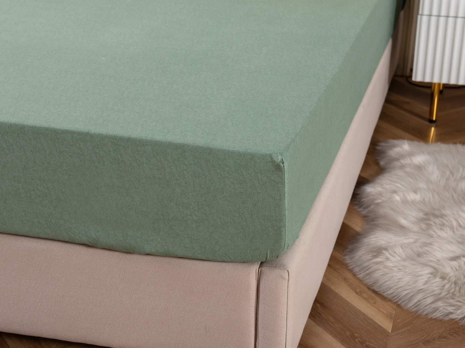 Удобная и практичная простынь на резинке не будет топорщиться и сбиваться во сне. Подойдет для матрасов высотой до 30 см.