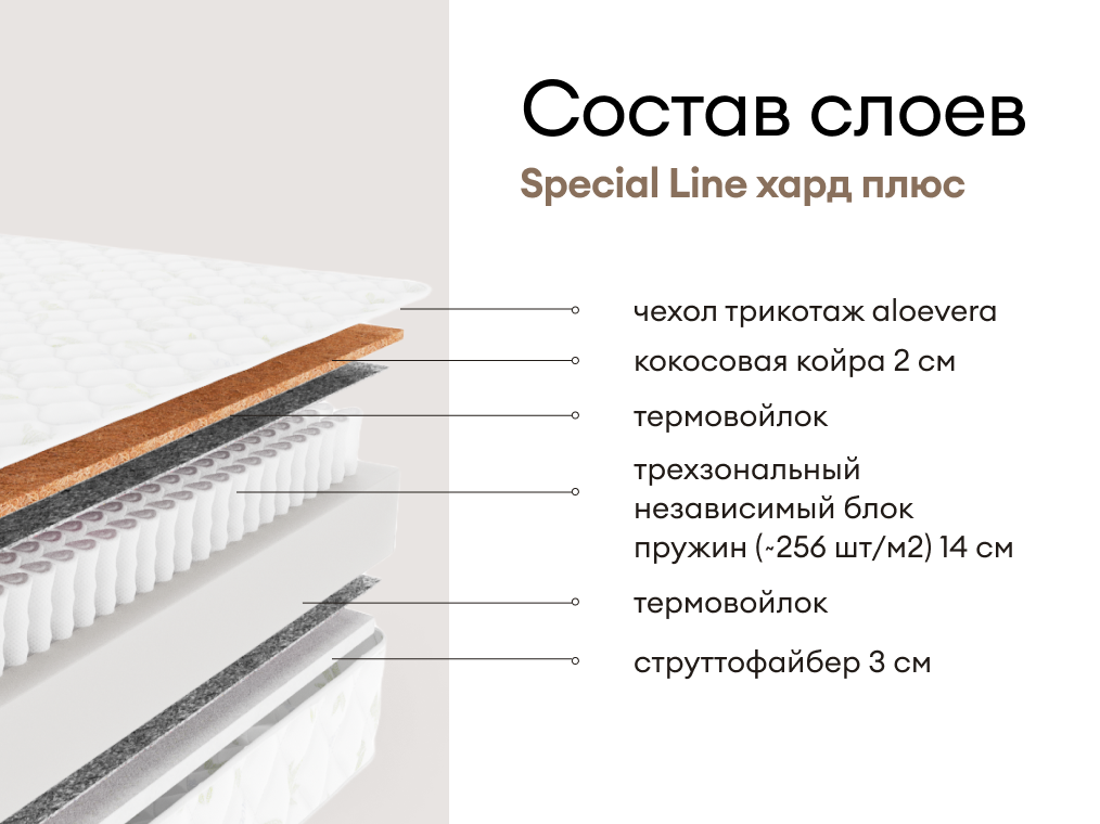 Матрас Мистер Слип Special Line хард плюс — это практичная модель для тех, кто ценит комфорт и возможность настроить спальное место под свои предпочтения. Благодаря разным уровням жёсткости сторон, он подойдёт для круглогодичного использования и различных потребностей.