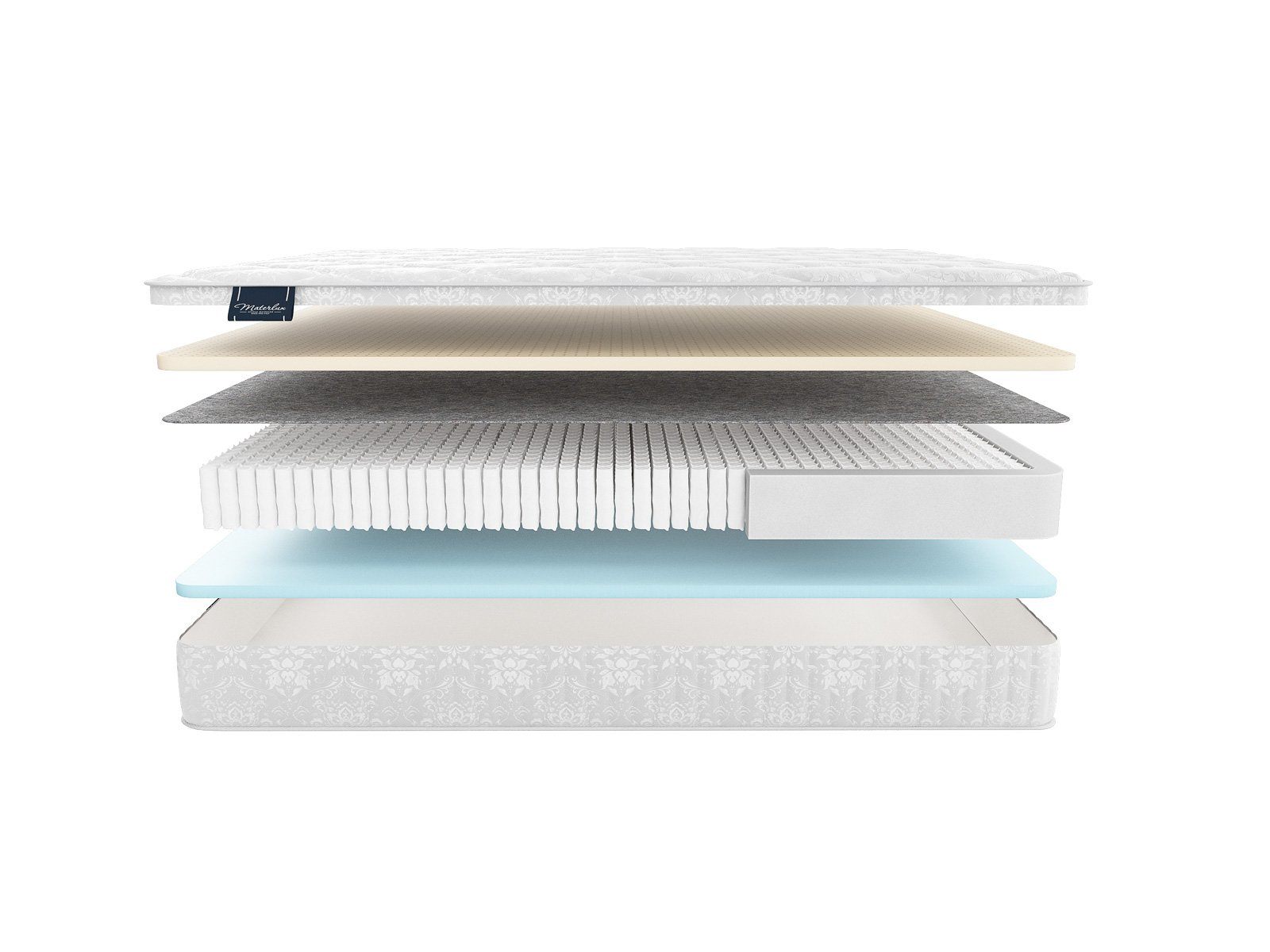 Матрас снабжен независимым пружинным блоком «Мультипакет» (1040 пружин на спальное место), который создает анатомический и ортопедический эффект.